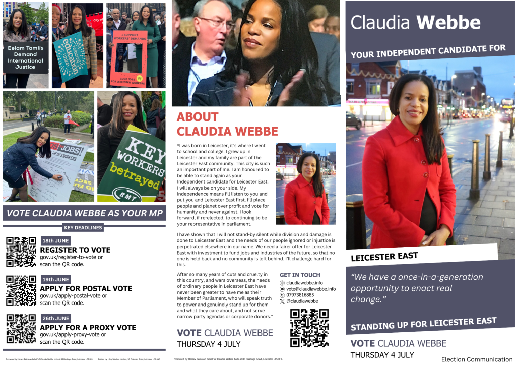 I created a tri-fold leaflet for a Member of Parliament ahead of the 2024 General Election campaign. The leaflet features a structured six-panel layout, campaign-aligned colour palette, and modern typography to maintain brand consistency and readability. High-quality candidate imagery, concise copy blocks, and clear calls to action were incorporated to support both engagement and print clarity. The final artwork was delivered as a print-ready digital design, with bleed, crop marks, and layout precision optimized for physical distribution.